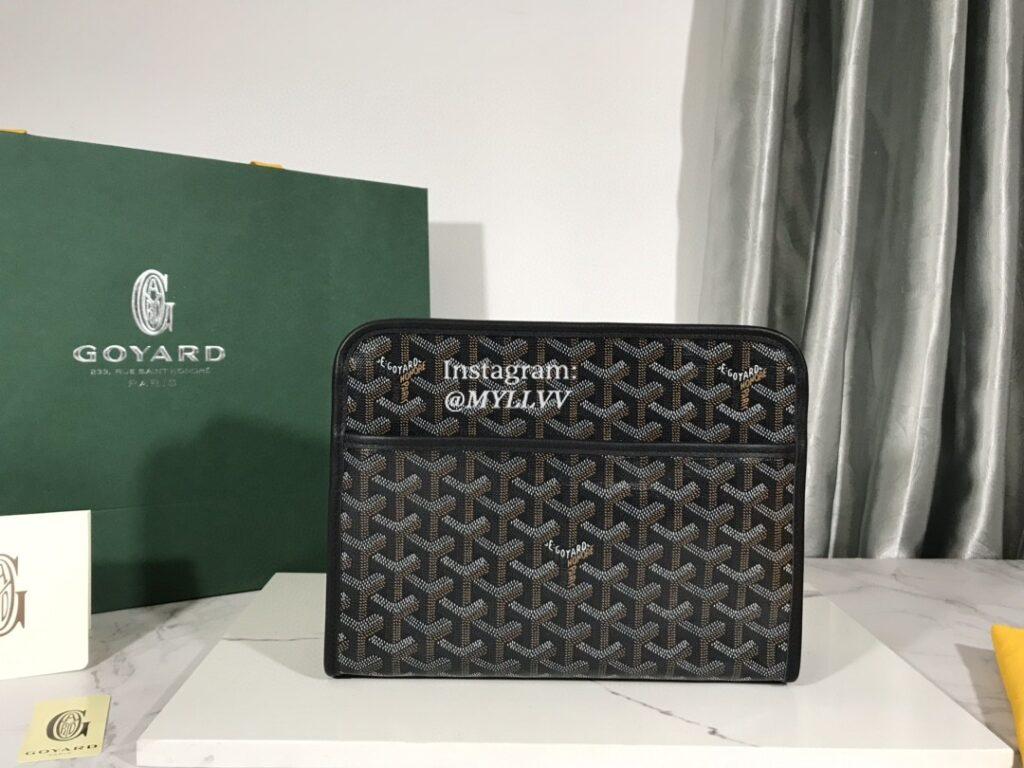 Top Quality Version:MYLLVV » Goyard Goyardine Canvas Chevroches Calfskin Cowhide Jouvence Small Wash Bag Black