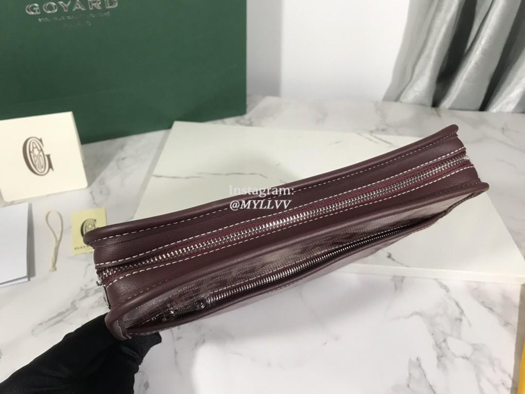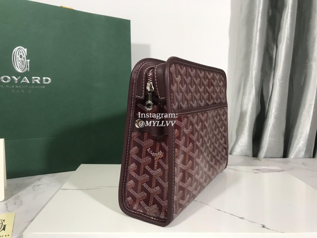 Top Quality Version:MYLLVV » Goyard Goyardine Canvas Chevroches Calfskin Cowhide Jouvence Small Wash Bag Wine Red