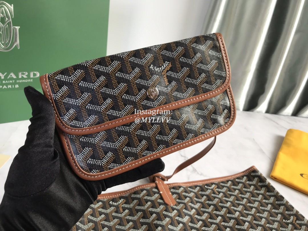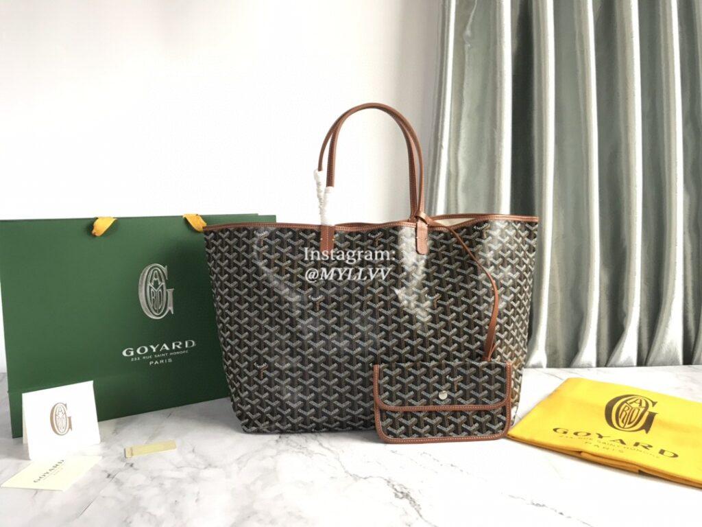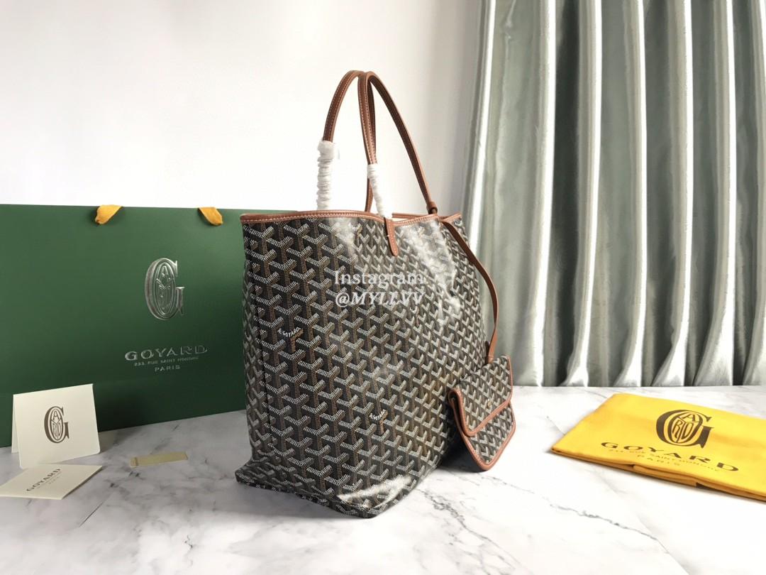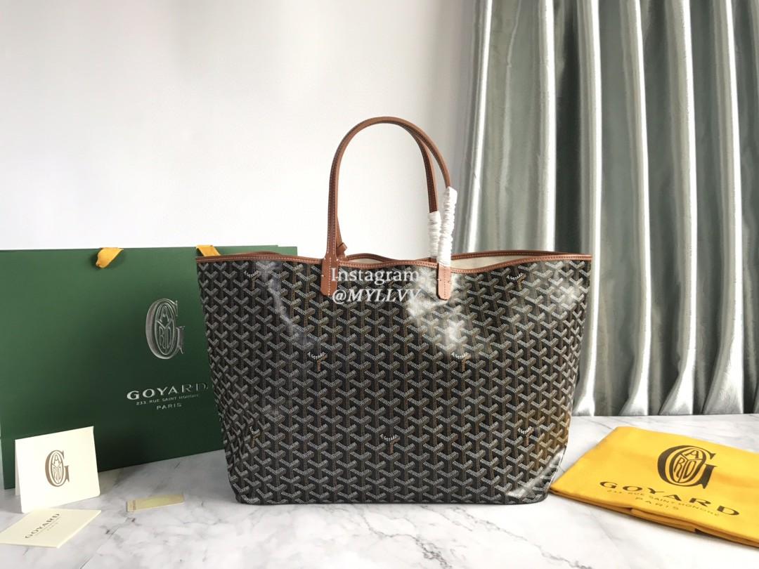 Top Quality Version:MYLLVV » Goyard Goyardine Canvas Chevroches Calfskin Cowhide Large Tote Bag Brown 020144
