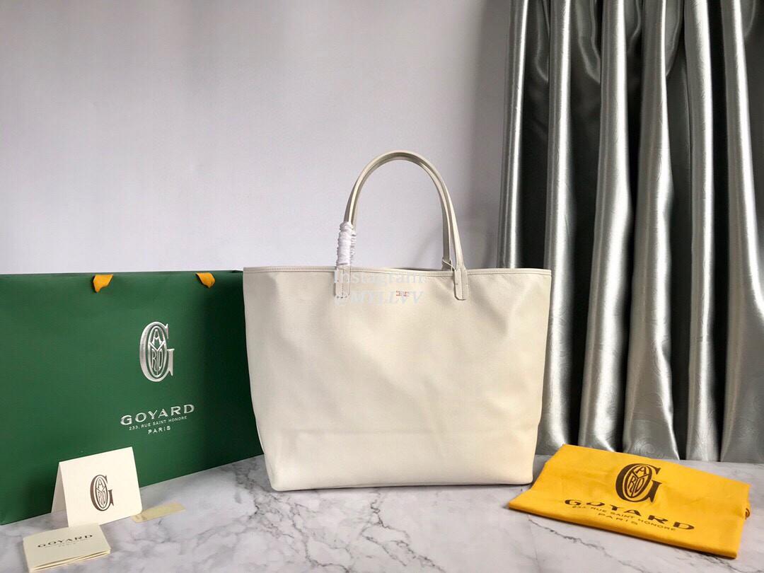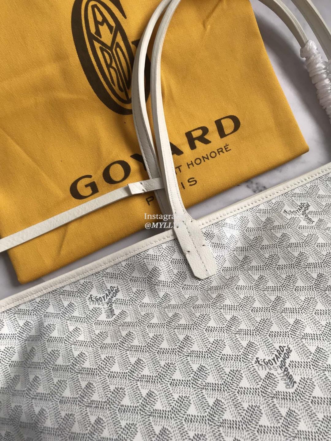 Top Quality Version:MYLLVV » Goyard Goyardine Canvas Chevroches Calfskin Cowhide Large Two-Sided Tote Bag White 020661
