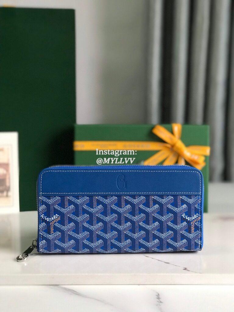 Top Quality Version:MYLLVV » Goyard Goyardine Canvas Chevroches Calfskin Cowhide Long Wallet Blue 020606