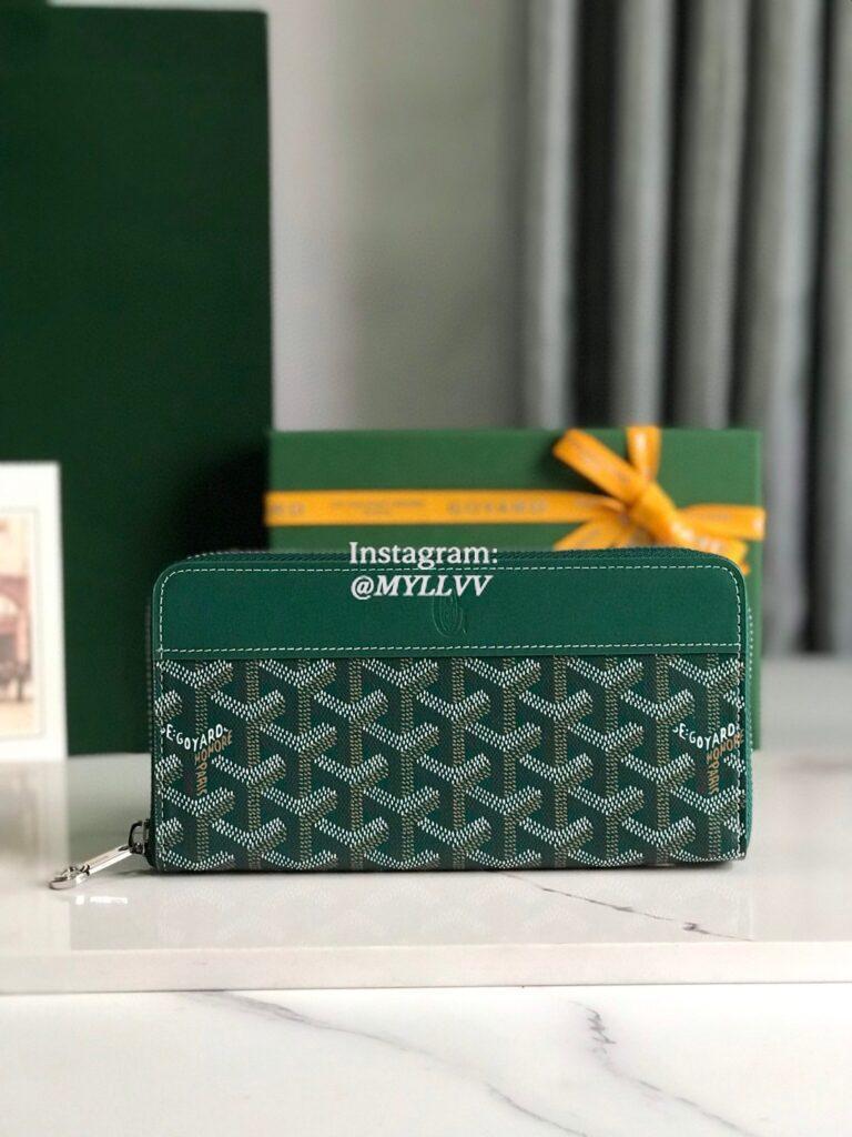 Top Quality Version:MYLLVV » Goyard Goyardine Canvas Chevroches Calfskin Cowhide Long Wallet Green 020606