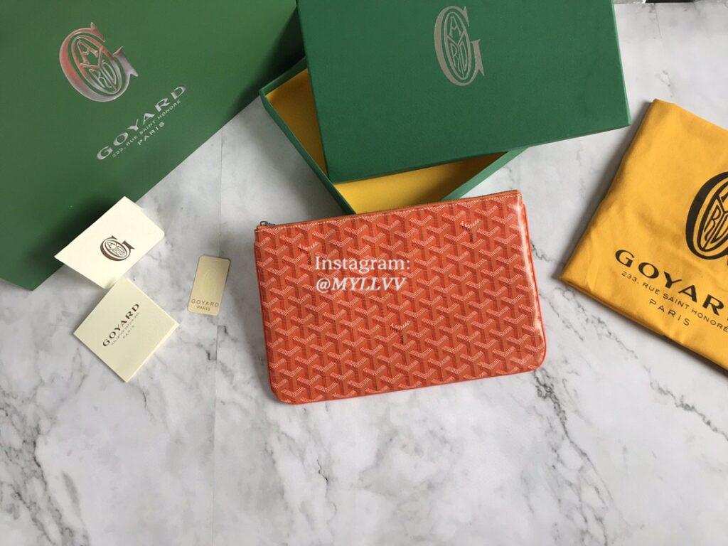 Top Quality Version:MYLLVV » Goyard Goyardine Canvas Chevroches Calfskin Cowhide Medium Handbag Orange 020168