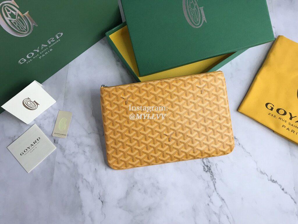 Top Quality Version:MYLLVV » Goyard Goyardine Canvas Chevroches Calfskin Cowhide Medium Handbag Yellow 020168