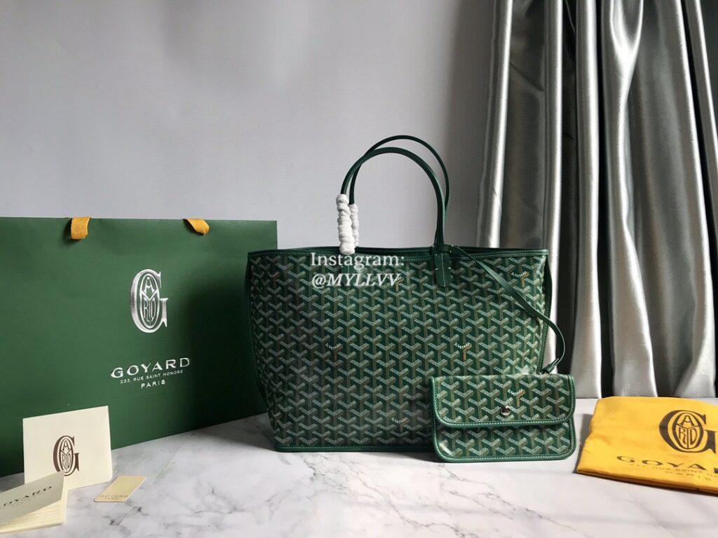 Top Quality Version:MYLLVV » Goyard Goyardine Canvas Chevroches Calfskin Cowhide Medium Two-Sided Tote Bag Green 020661