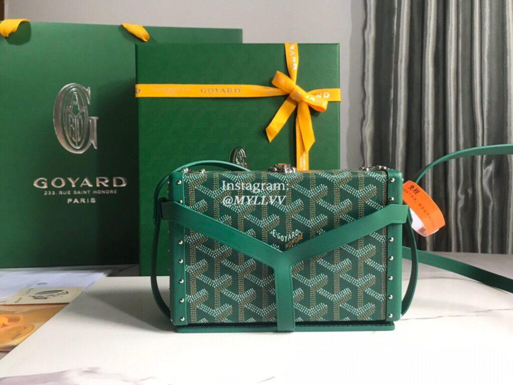 Top Quality Version:MYLLVV » Goyard Goyardine Canvas Chevroches Calfskin Cowhide Minaudière Box Bag Green