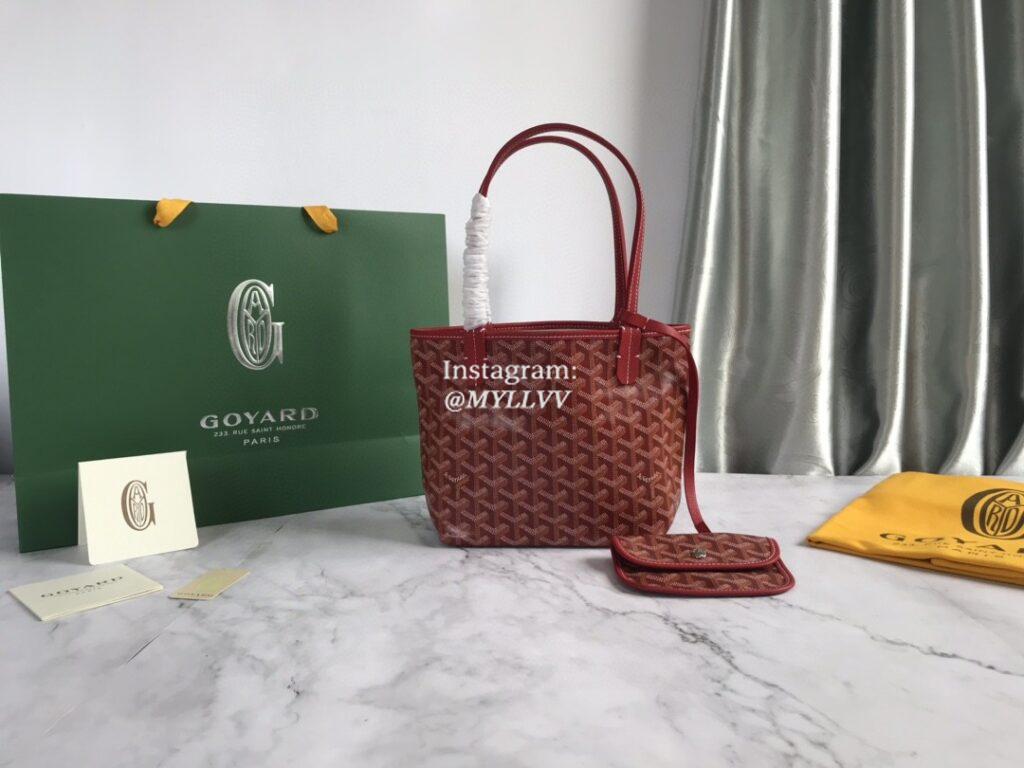 Top Quality Version:MYLLVV » Goyard Goyardine Canvas Chevroches Calfskin Cowhide Mini Tote Bag Red 020181