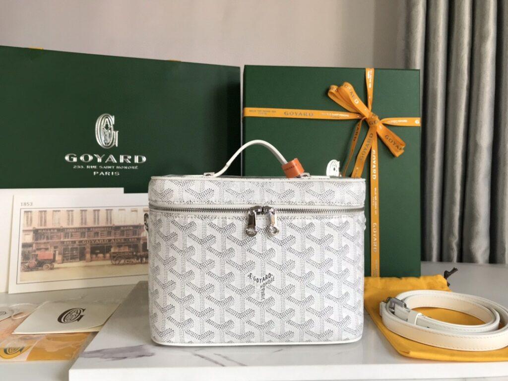Top Quality Version:MYLLVV » Goyard Goyardine Canvas Chevroches Calfskin Cowhide Muse Cosmetic Bag White 020185