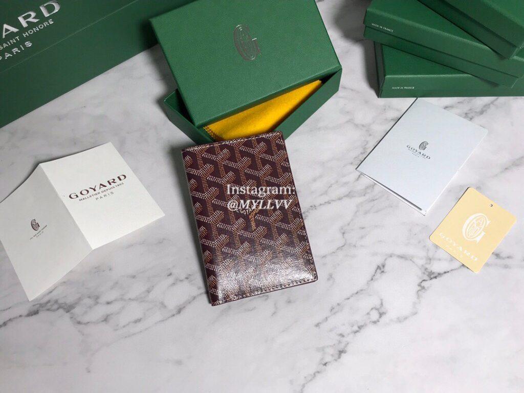 Top Quality Version:MYLLVV » Goyard Goyardine Canvas Chevroches Calfskin Cowhide Passport Wine Red