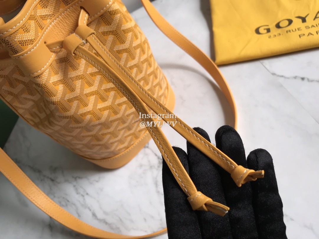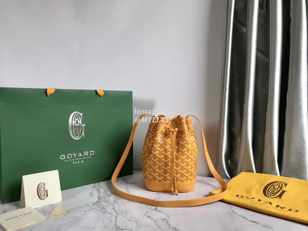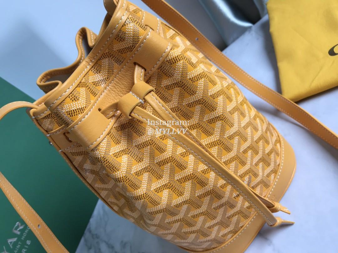 Top Quality Version:MYLLVV » Goyard Goyardine Canvas Chevroches Calfskin Cowhide Petit Flot Bucket Bag Yellow 020196