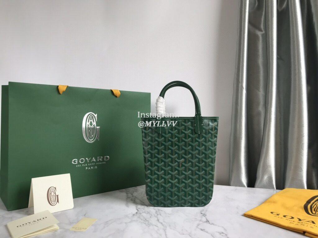 Top Quality Version:MYLLVV » Goyard Goyardine Canvas Chevroches Calfskin Cowhide Poitiers Bucket Bag Green