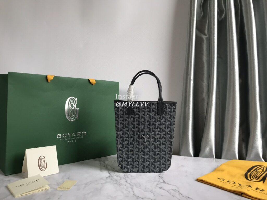 Top Quality Version:MYLLVV » Goyard Goyardine Canvas Chevroches Calfskin Cowhide Poitiers Bucket Bag Grey