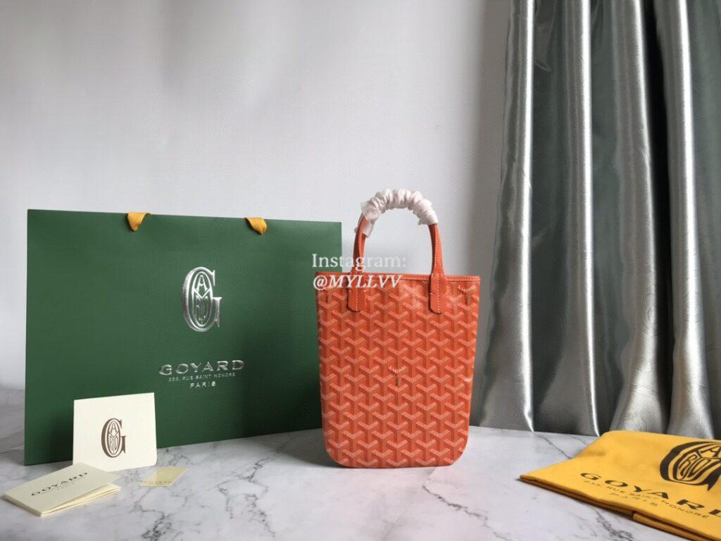 Top Quality Version:MYLLVV » Goyard Goyardine Canvas Chevroches Calfskin Cowhide Poitiers Bucket Bag Orange