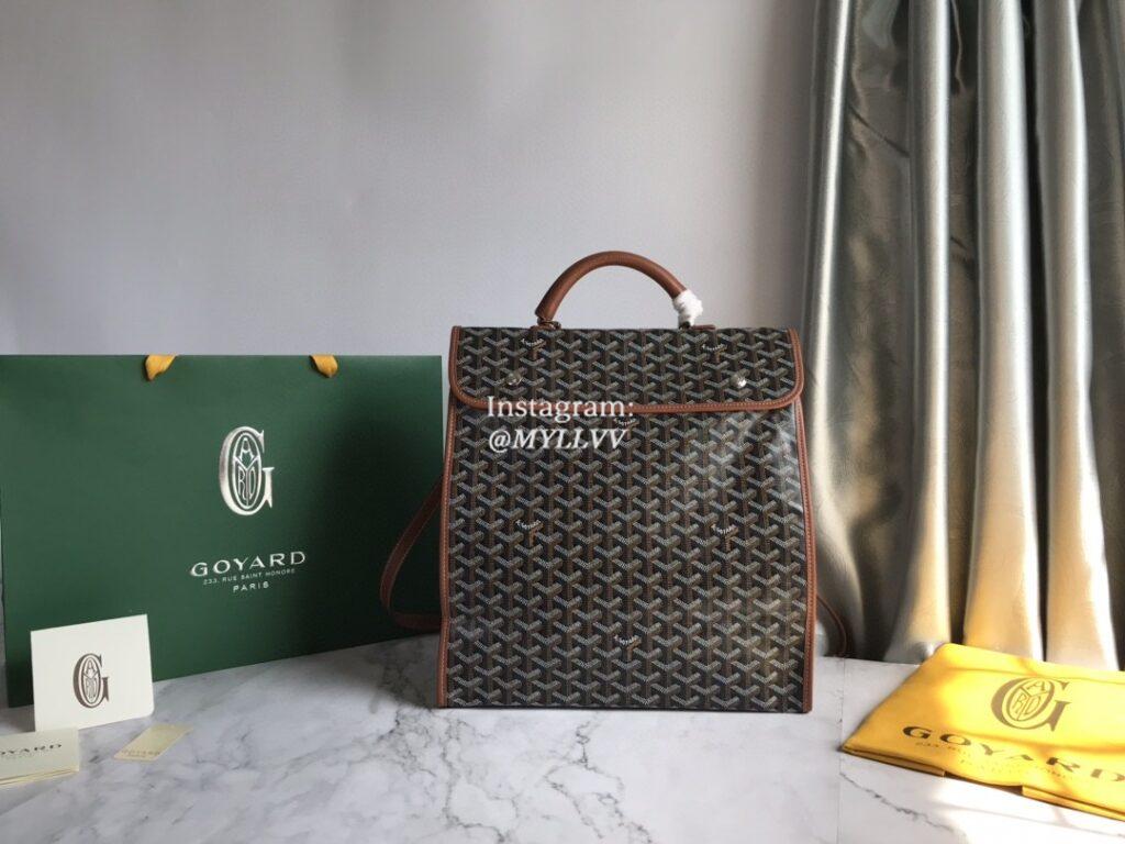 Top Quality Version:MYLLVV » Goyard Goyardine Canvas Chevroches Calfskin Cowhide Saint Leger Backpack Brown 020318