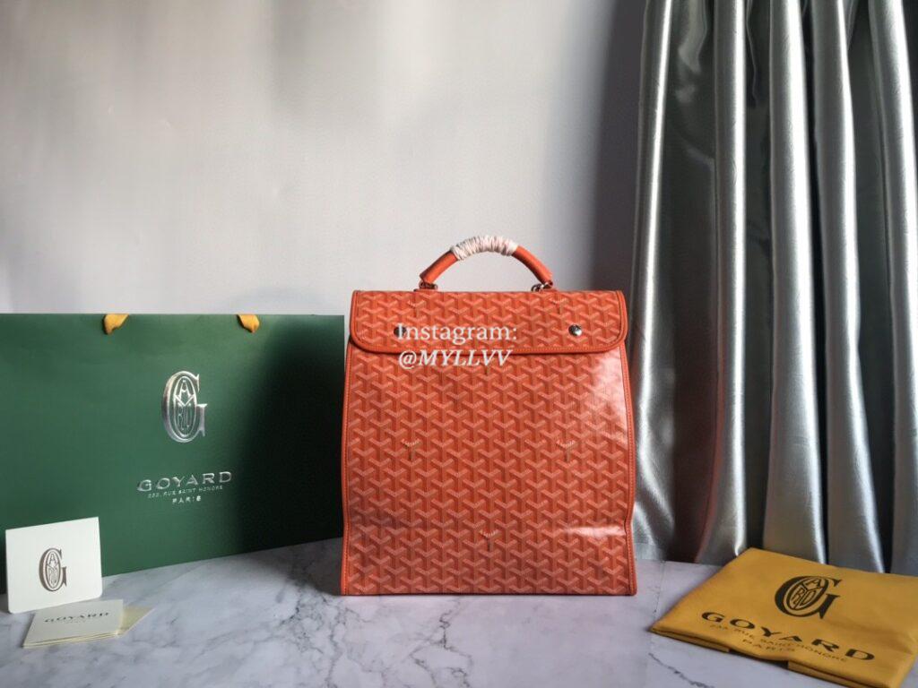 Top Quality Version:MYLLVV » Goyard Goyardine Canvas Chevroches Calfskin Cowhide Saint Leger Backpack Orange 020318