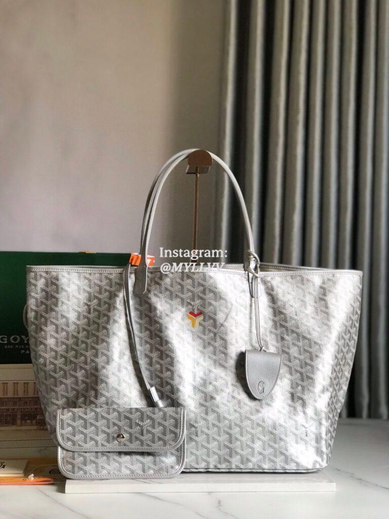Top Quality Version:MYLLVV » Goyard Goyardine Canvas Chevroches Calfskin Cowhide Saint Louis GM Tote Bag Silver 020144