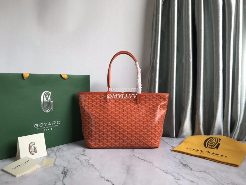 Top Quality Version:MYLLVV » Goyard Goyardine Canvas Chevroches Calfskin Cowhide Small Tote Bag Orange 020191