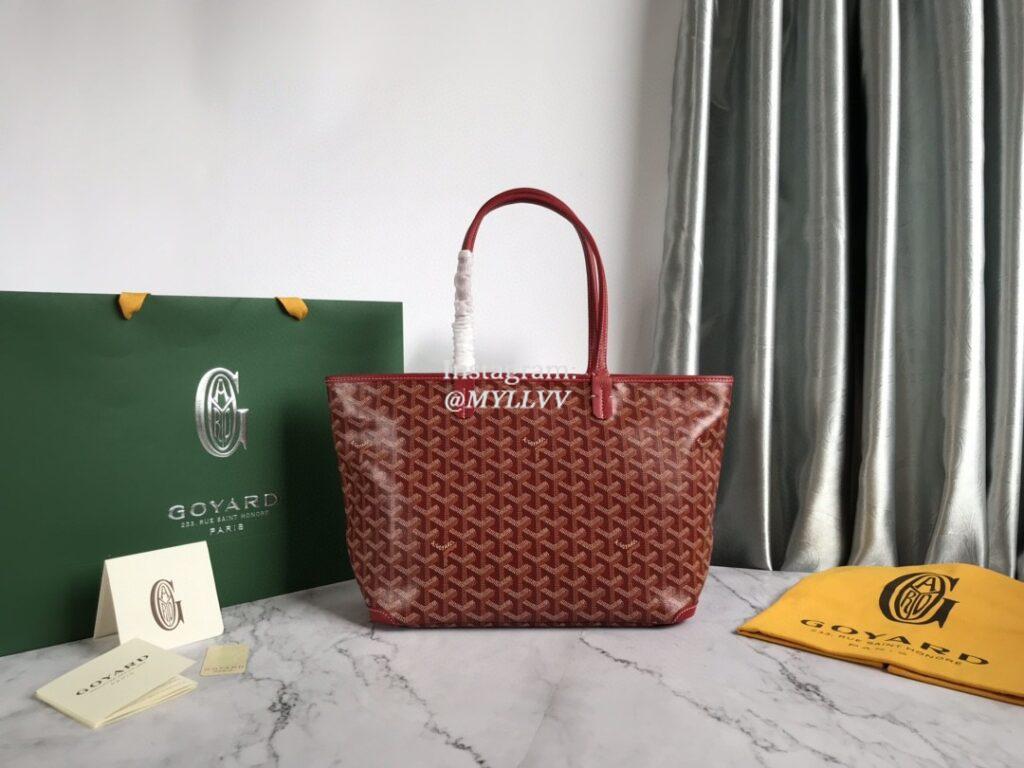Top Quality Version:MYLLVV » Goyard Goyardine Canvas Chevroches Calfskin Cowhide Small Tote Bag Red 020191