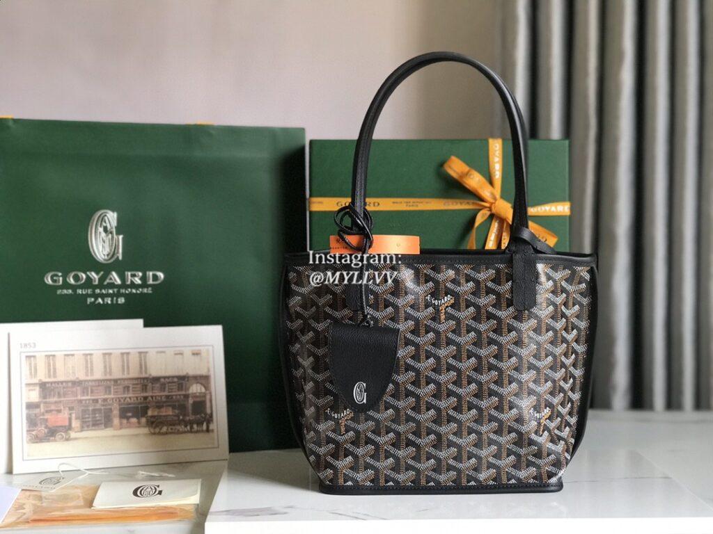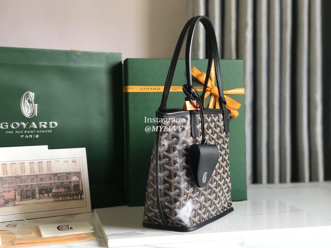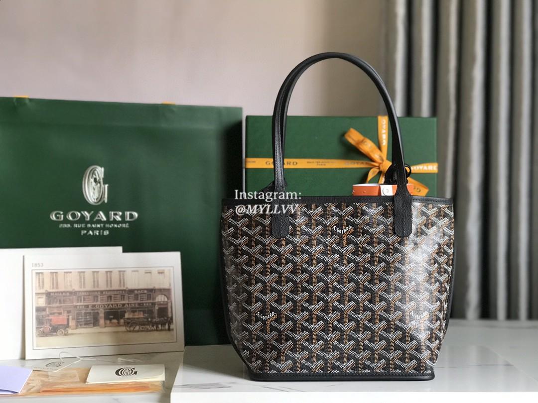 Top Quality Version:MYLLVV » Goyard Goyardine Canvas Chevroches Calfskin Cowhide Small Two-Sided Tote Bag Black 020660