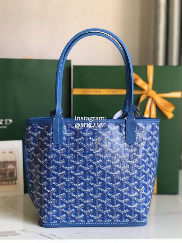 Top Quality Version:MYLLVV » Goyard Goyardine Canvas Chevroches Calfskin Cowhide Small Two-Sided Tote Bag Blue 020660