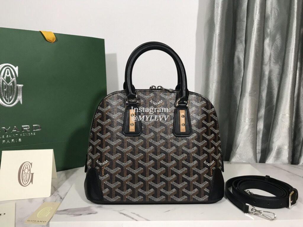 Top Quality Version:MYLLVV » Goyard Goyardine Canvas Chevroches Calfskin Cowhide Vendôme Shell Bag Black