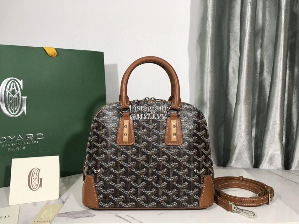 Top Quality Version:MYLLVV » Goyard Goyardine Canvas Chevroches Calfskin Cowhide Vendôme Shell Bag Brown