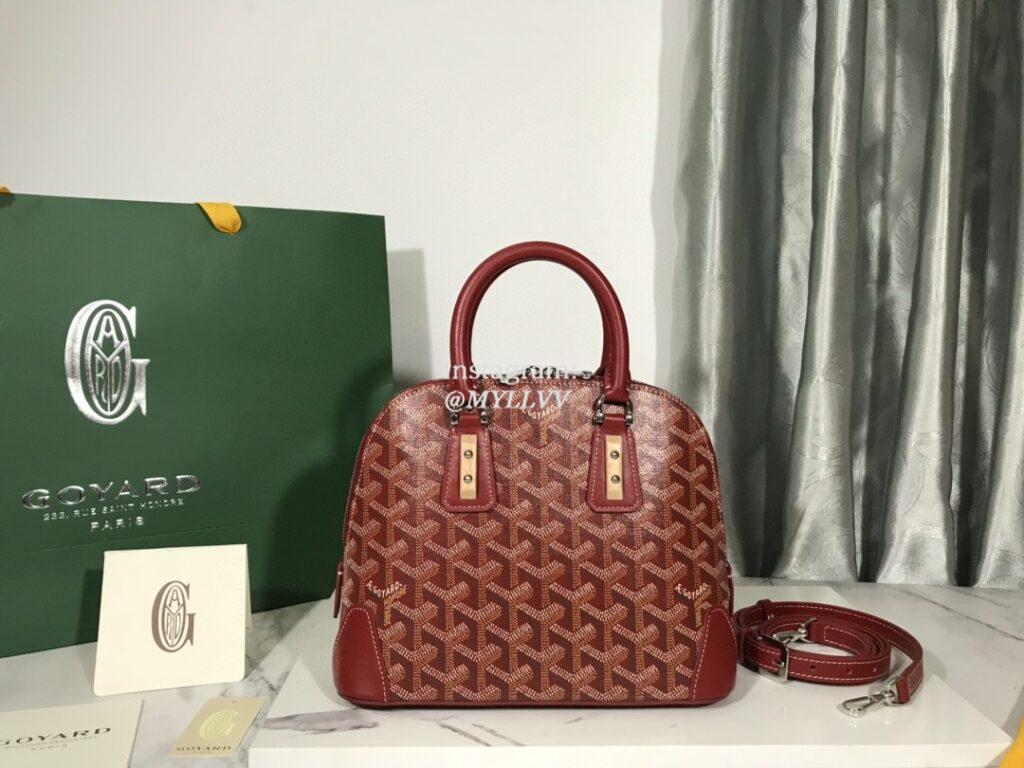 Top Quality Version:MYLLVV » Goyard Goyardine Canvas Chevroches Calfskin Cowhide Vendôme Shell Bag Red