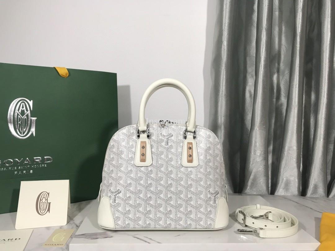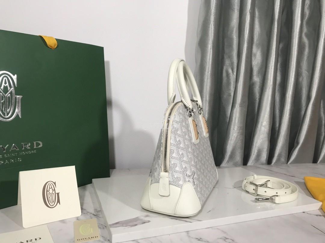Top Quality Version:MYLLVV » Goyard Goyardine Canvas Chevroches Calfskin Cowhide Vendôme Shell Bag White