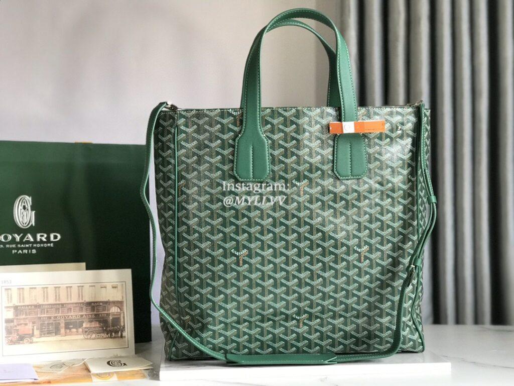Top Quality Version:MYLLVV » Goyard Goyardine Canvas Chevroches Calfskin Cowhide Voltaire Tote Bag Green 020190
