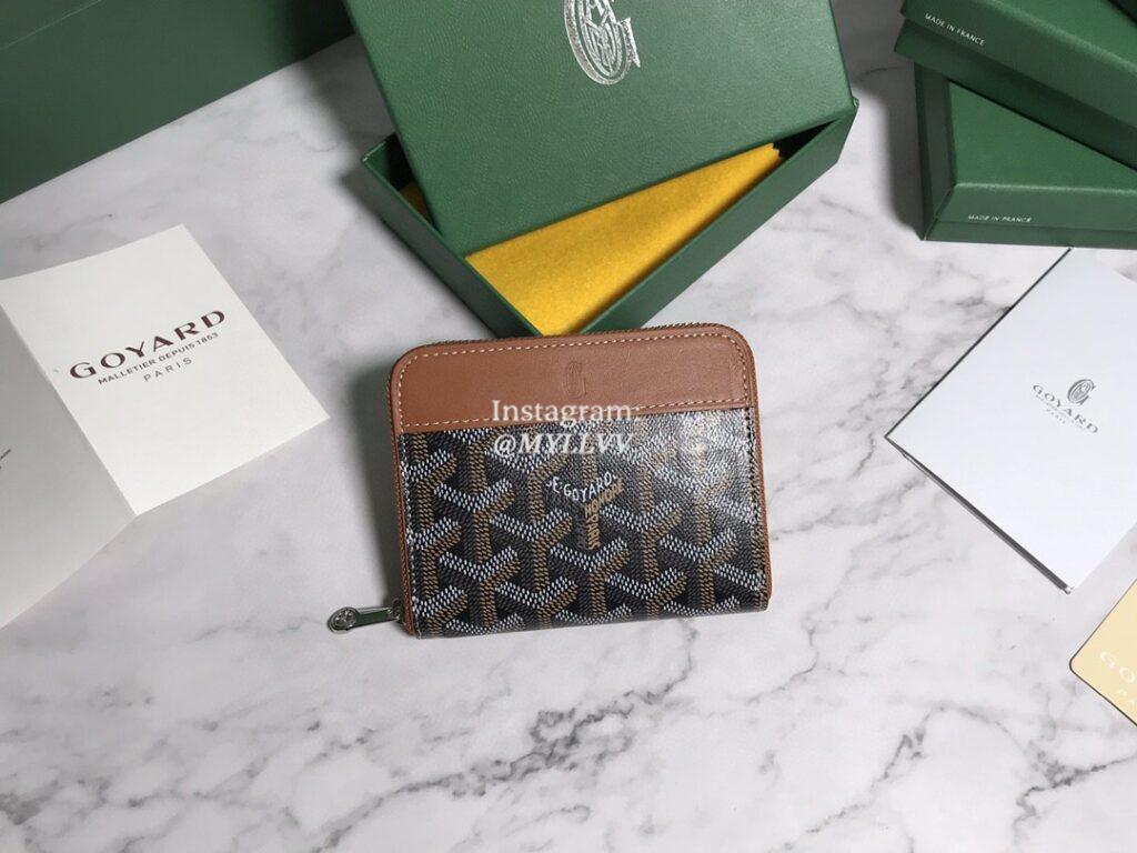Top Quality Version:MYLLVV » Goyard Goyardine Canvas Chevroches Calfskin Cowhide Zipper Wallet Brown