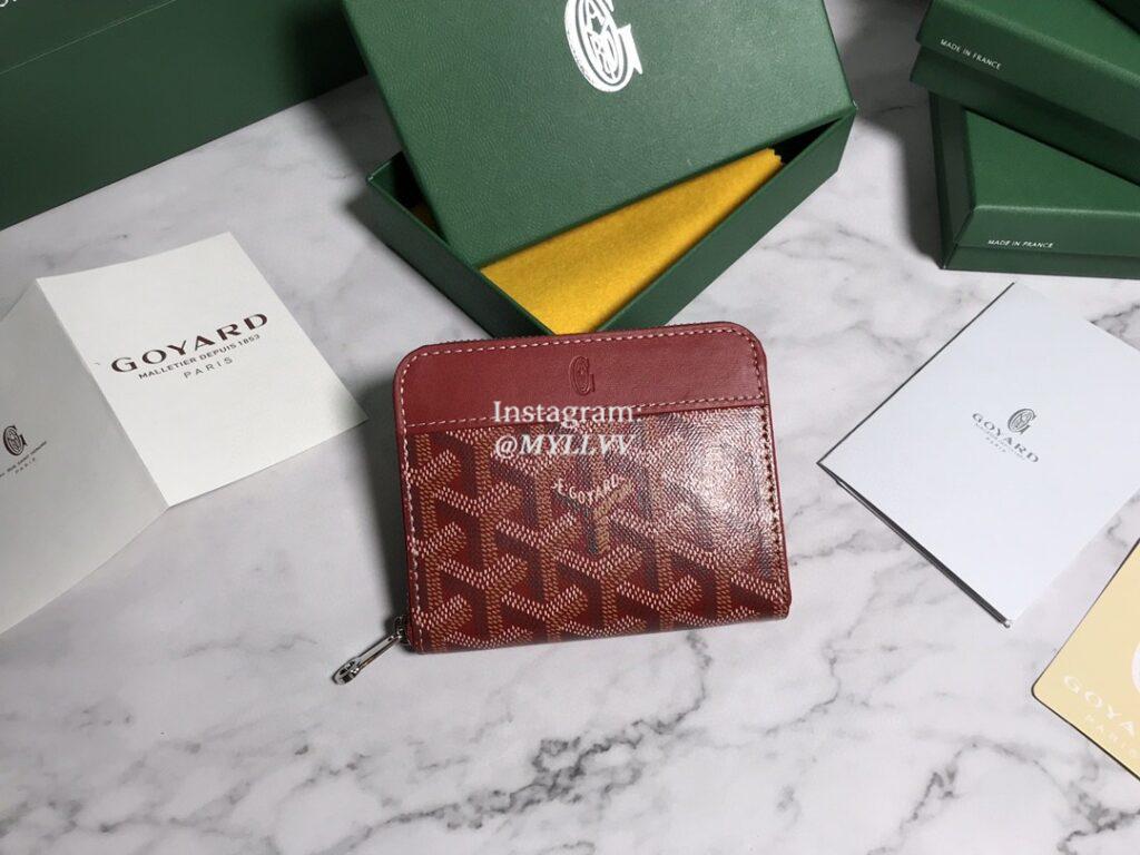 Top Quality Version:MYLLVV » Goyard Goyardine Canvas Chevroches Calfskin Cowhide Zipper Wallet Wine Red