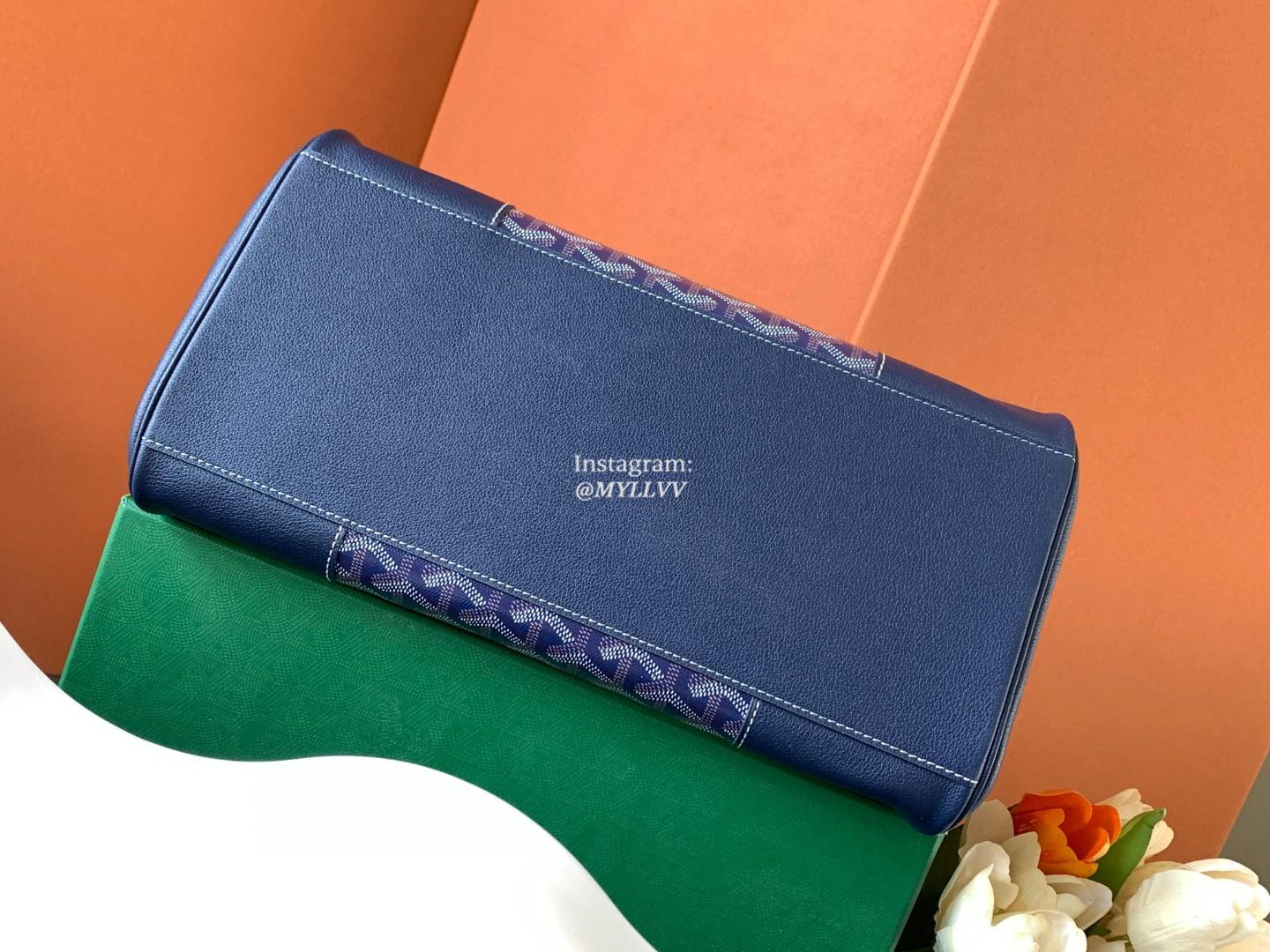 Top Quality Version:MYLLVV » Goyard Goyardine Canvas & Chevroches Calfskin Saïgon Tote Bag 8805 Navy Blue