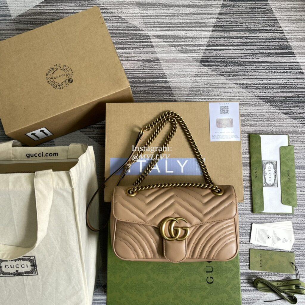 Top Quality Version:MYLLVV » Gucci Apricot Matelassé Chevron Leather With Heart GG Marmont Small Shoulder Bag 443497