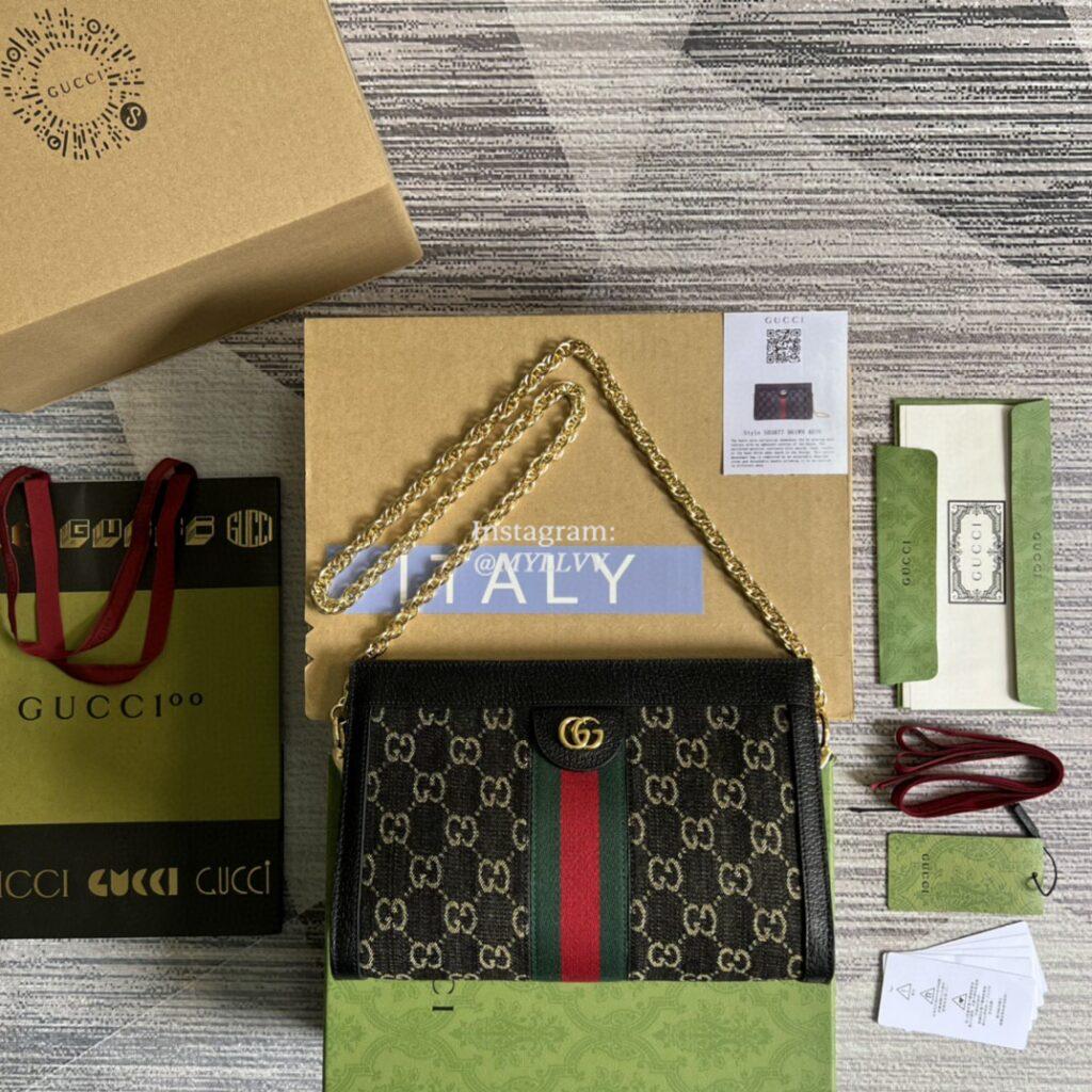 Top Quality Version:MYLLVV » Gucci Beige And Black GG Supreme Canvas Ophidia GG Small Shoulder Bag 503877