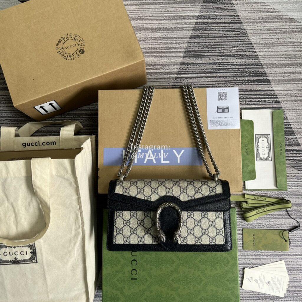 Top Quality Version:MYLLVV » Gucci Beige And Blue GG Supreme Canvas Dionysus GG Small Shoulder Bag 499623