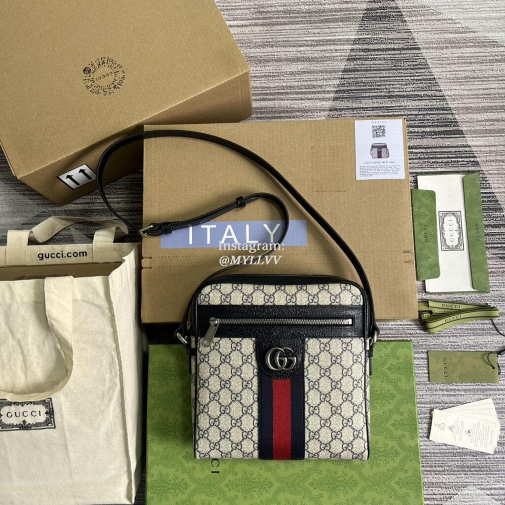 Top Quality Version:MYLLVV » Gucci Beige And Blue GG Supreme Canvas Ophidia GG Small Messenger Bag 547926