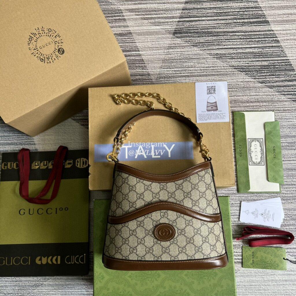 The Interlocking G has remained one of the most symbolic codes of the House since its introduction. The distinguishing emblem appears as a leather detail atop this large shoulder bag. Completing the design’s logo feel, the style is crafted from unmistakable GG Supreme canvas.