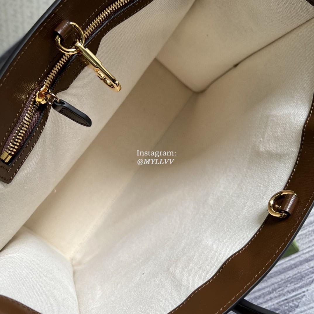 Top Quality Version:MYLLVV » Gucci Beige And Ebony GG Supreme Canvas Medium Tote With Interlocking G 674148
