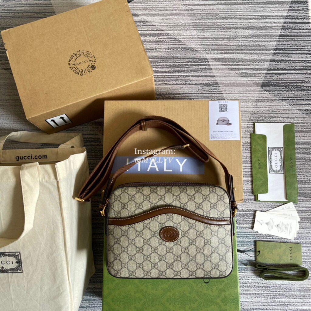 Top Quality Version:MYLLVV » Gucci Beige And Ebony GG Supreme Canvas Messenger Bag With Interlocking G 675891