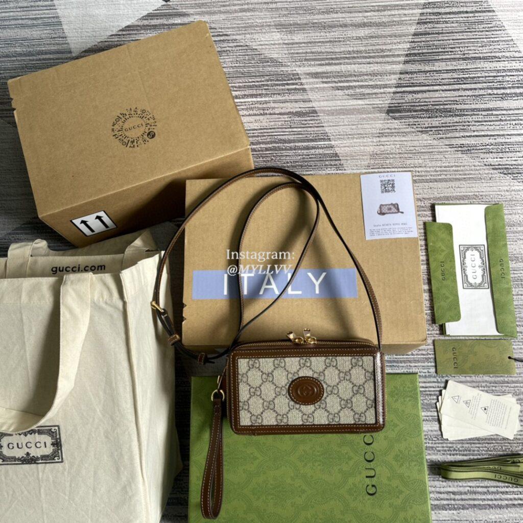 Top Quality Version:MYLLVV » Gucci Beige And Ebony GG Supreme Canvas Mini Bag With Interlocking G 671674