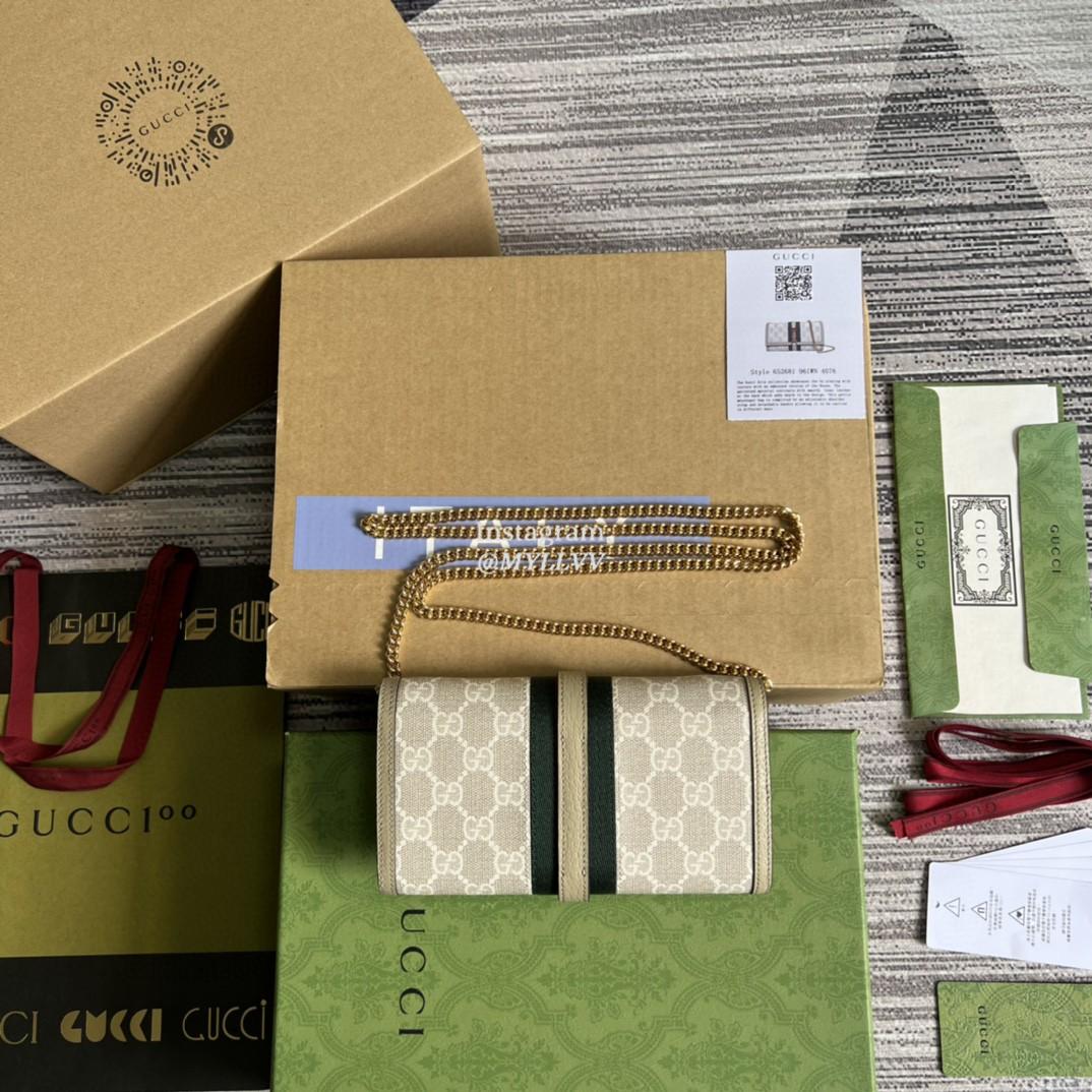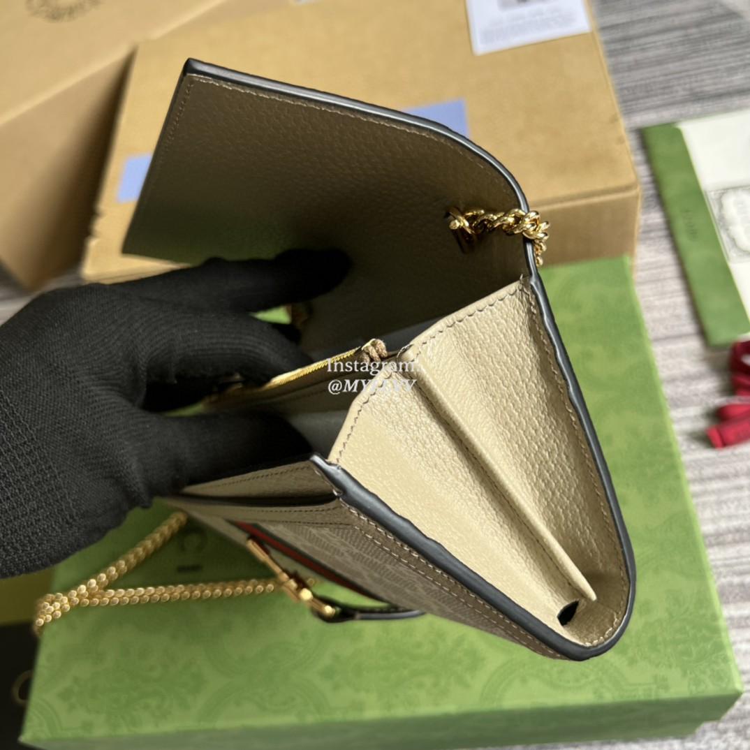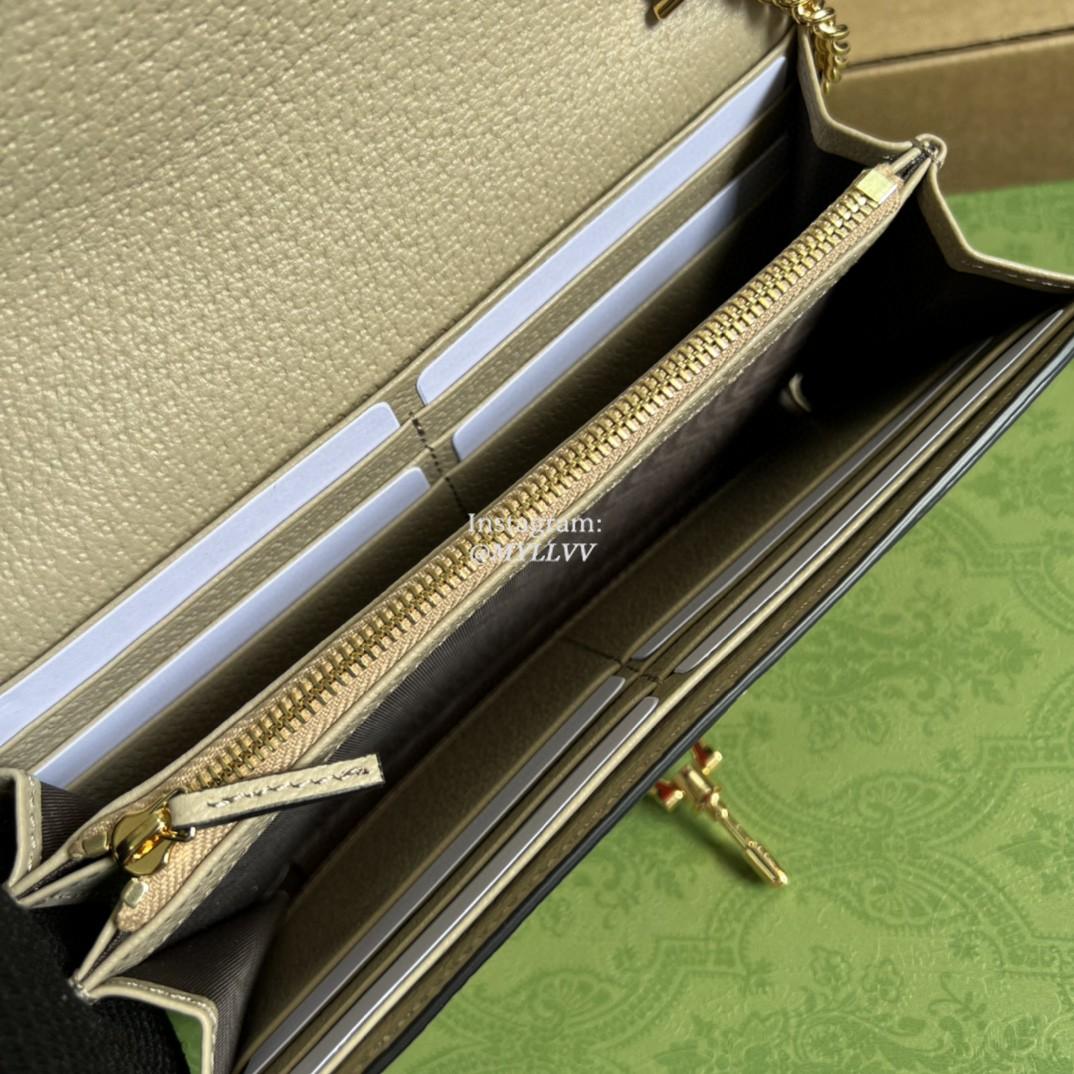 Top Quality Version:MYLLVV » Gucci Beige And White GG Supreme Canvas Jackie 1961 Chain Wallet 652681