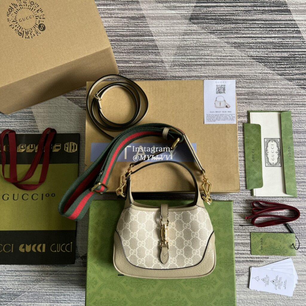 Top Quality Version:MYLLVV » Gucci Beige And White GG Supreme Canvas Jackie 1961 Mini Shoulder Bag 685127