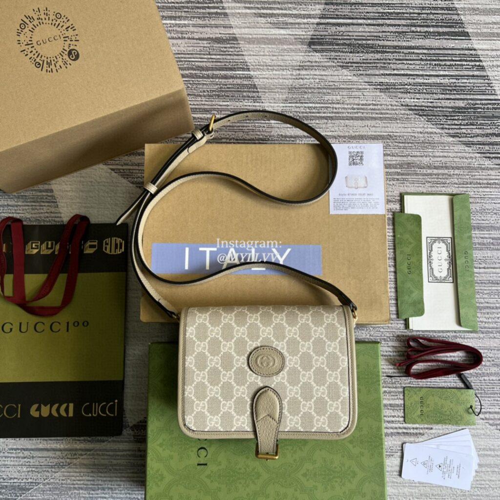 Top Quality Version:MYLLVV » Gucci Beige And White GG Supreme Canvas Mini Shoulder Bag With Interlocking G 671620