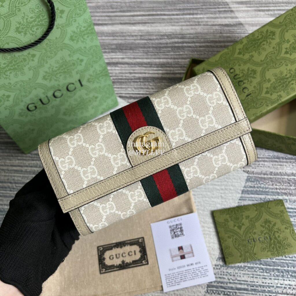 Top Quality Version:MYLLVV » Gucci Beige And White GG Supreme Canvas Ophidia GG Continental Wallet 523153