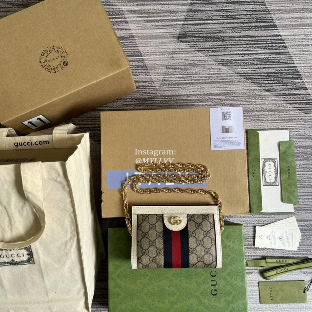 Top Quality Version:MYLLVV » Gucci Beige And White GG Supreme Canvas Ophidia GG Mini Shoulder Bag 602676
