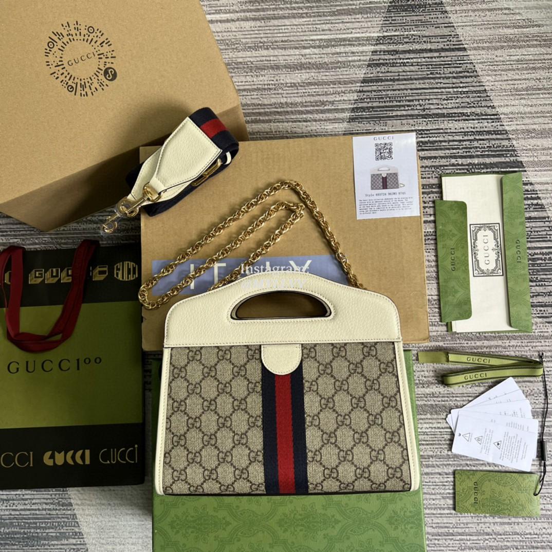 Top Quality Version:MYLLVV » Gucci Beige And White GG Supreme Canvas Ophidia Small Tote With Web 693724