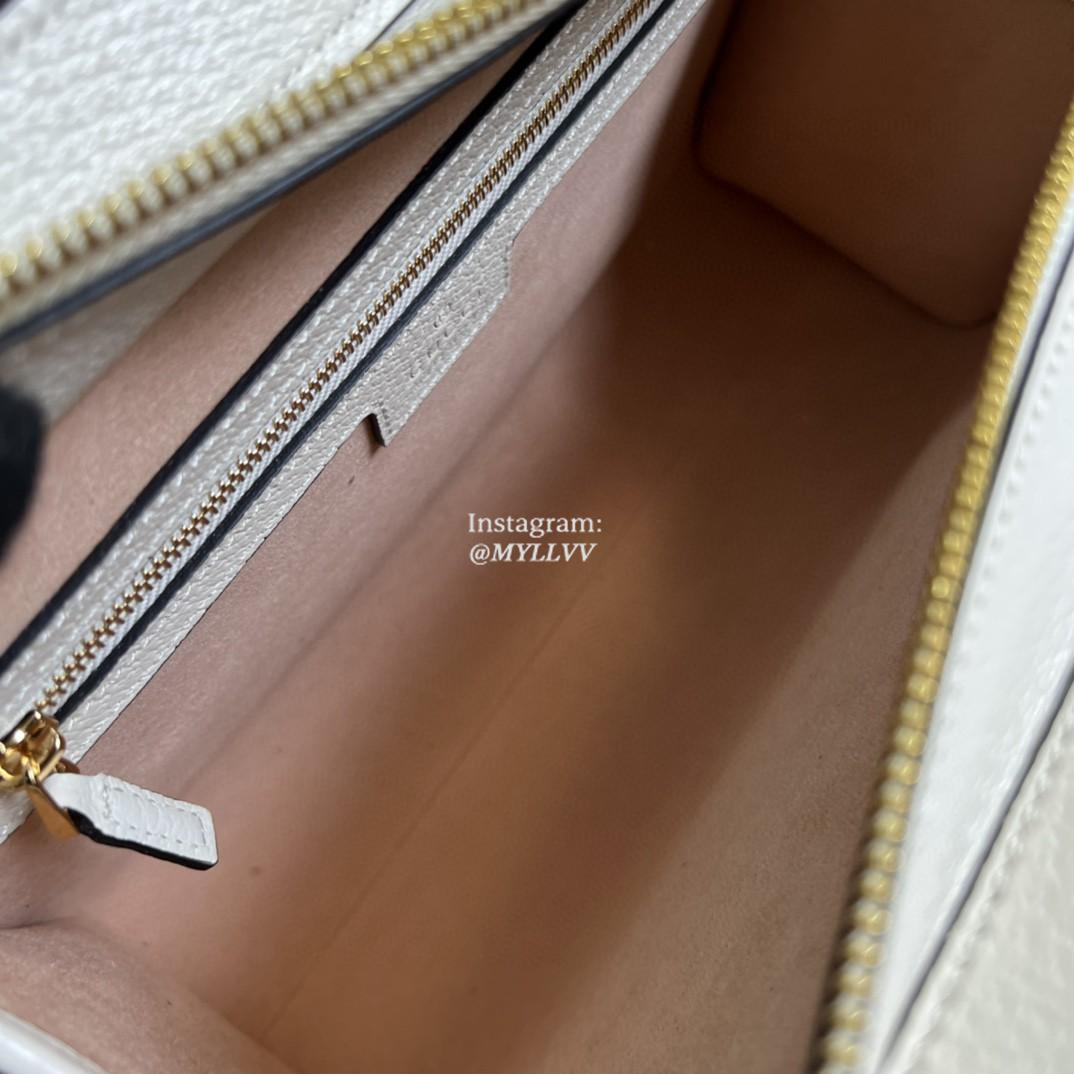 Mirroring the material’s historic origins, GG Supreme is introduced in a timeless mix of white and beige for Gucci Love Parade. The canvas has come to the front of each collection decade after decade to become a hallmark of the House. Here, the classic palette defines this small Ophidia tote bag.