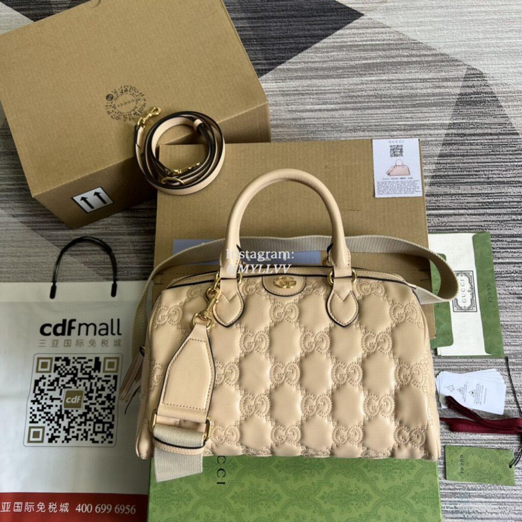 Top Quality Version:MYLLVV » Gucci Beige GG Matelassé Leather Medium Bag 702242