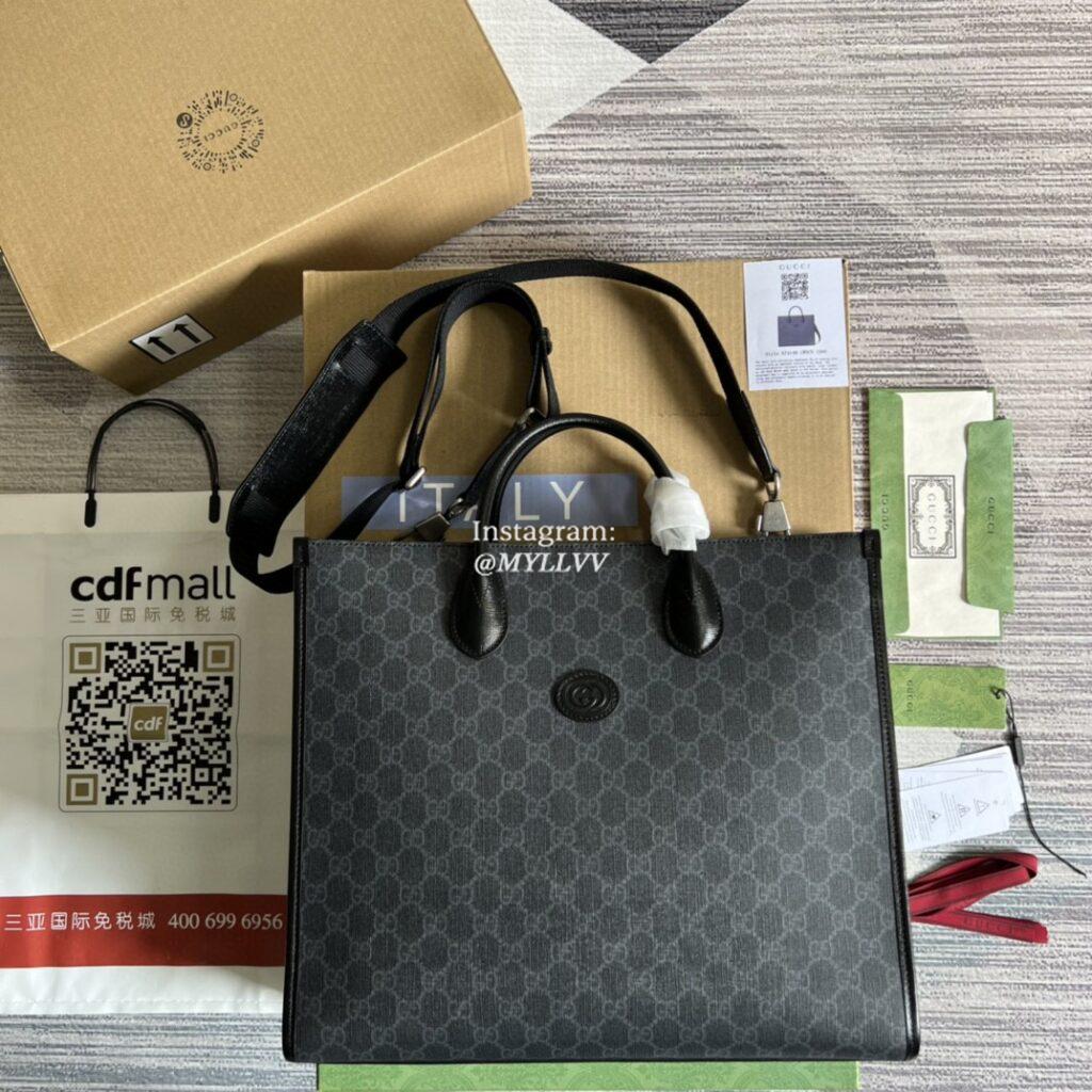 Top Quality Version:MYLLVV » Gucci Black And Ebony GG Supreme Canvas Medium Tote With Interlocking G 674148