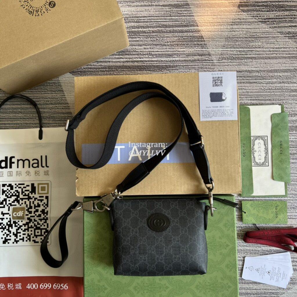 Top Quality Version:MYLLVV » Gucci Black And Ebony GG Supreme Canvas Messenger Bag With Interlocking G 723306